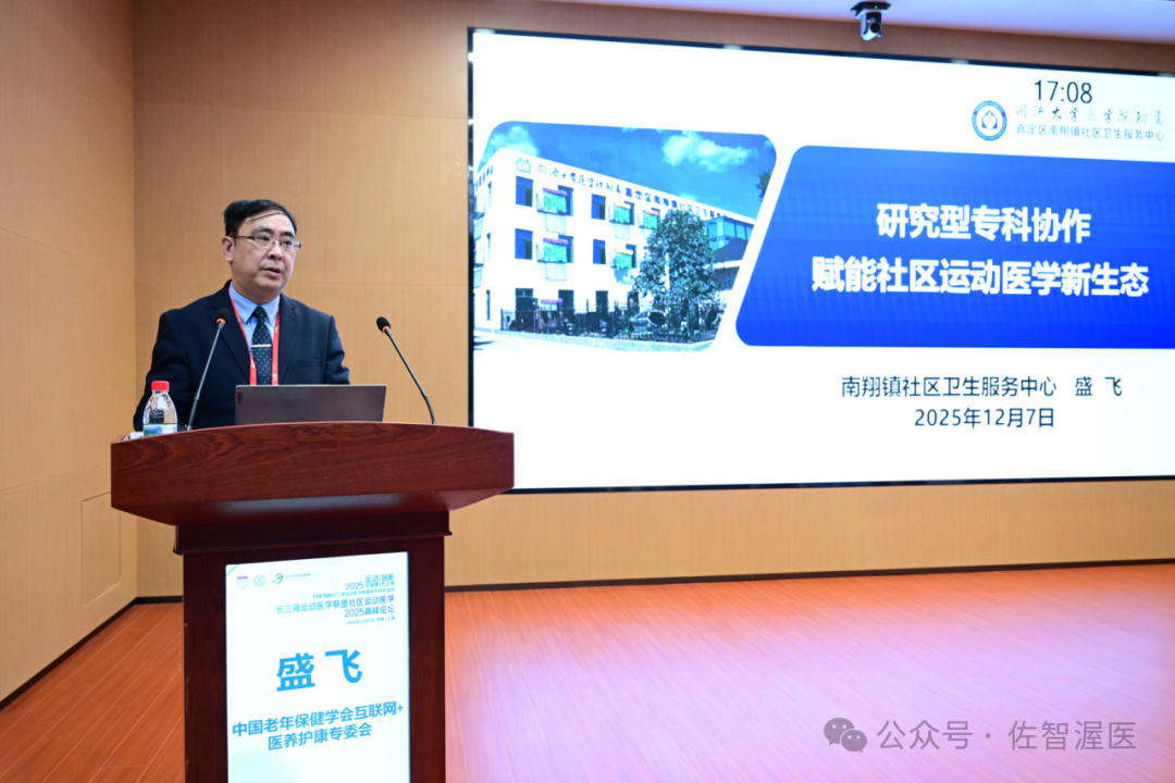 中国老年保健学会“互联网+”医养护康专委会主任盛飞针对社区康复发展困境与破解路径展开分享,他提出社区运动医学中心的建设并非简单的专科下沉,而是构建从高校科研到社区实践、从人才培养到产业转化的完整闭环,最终实现 “谁在做,谁来教” 的医疗人才教育改革理念,破解基层医疗 “人才断层、教学脱节、科研转化难” 三大痛点。