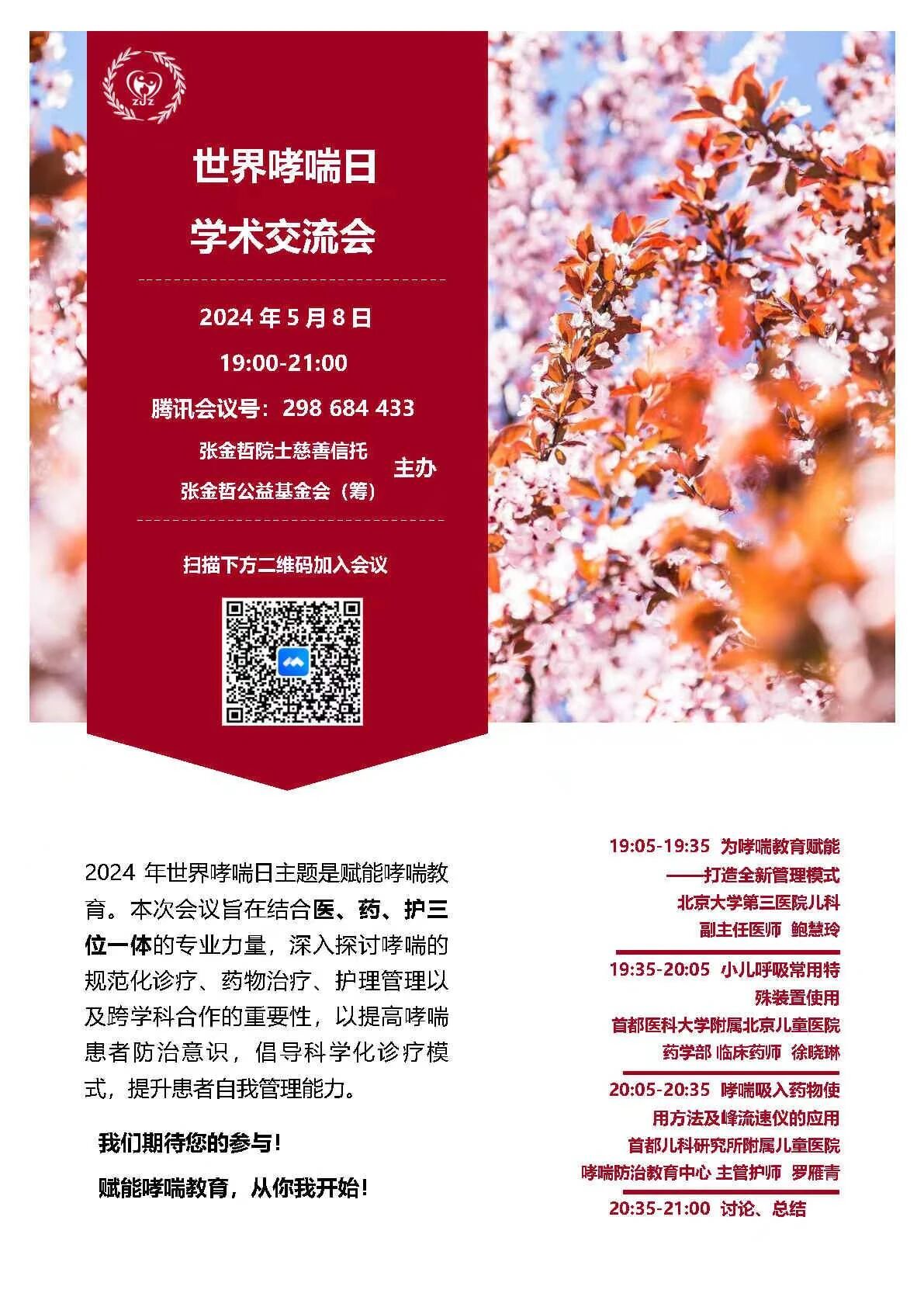 2024 年世界哮喘日主题是赋能哮喘教育。本次会议旨在结合医、药、护三位一体的专业力量,深入探讨哮喘的规范化诊疗、药物治疗、护理管理以及跨学科合作的重要性,以提高哮喘患者防治意识,倡导科学化诊疗模式,提升患者自我管理能力。