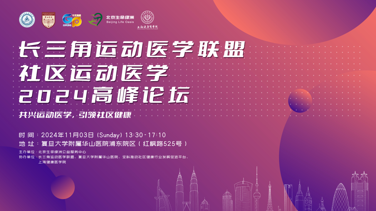 为深度探讨基层卫生与运动医学的融合发展路径及其多层级、跨学科的发展潜力,2024年11月3日,由中国康复医学会、长三角运动医学联盟联合北京生命绿洲主办,复旦大学附属华山医院承办的“长三角运动医学联盟社区运动医学2024高峰论坛”将在上海隆重召开。