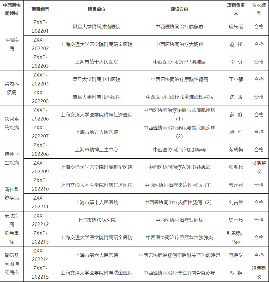 根据《关于公布综合医院中西医协同引导(第一期)项目立项名单的通知》(沪卫中管〔2022〕39号)要求,我委近期组织专家对项目进行了验收。