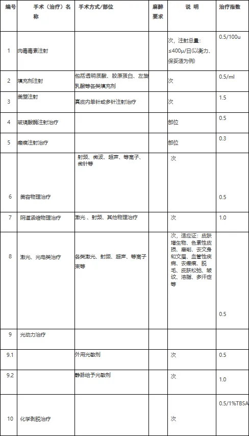 4. 三级医疗美容(整形)专科医院、设有医疗美容(整形)科目的三级综合医院:治疗指数累计不超过9.0/次。
