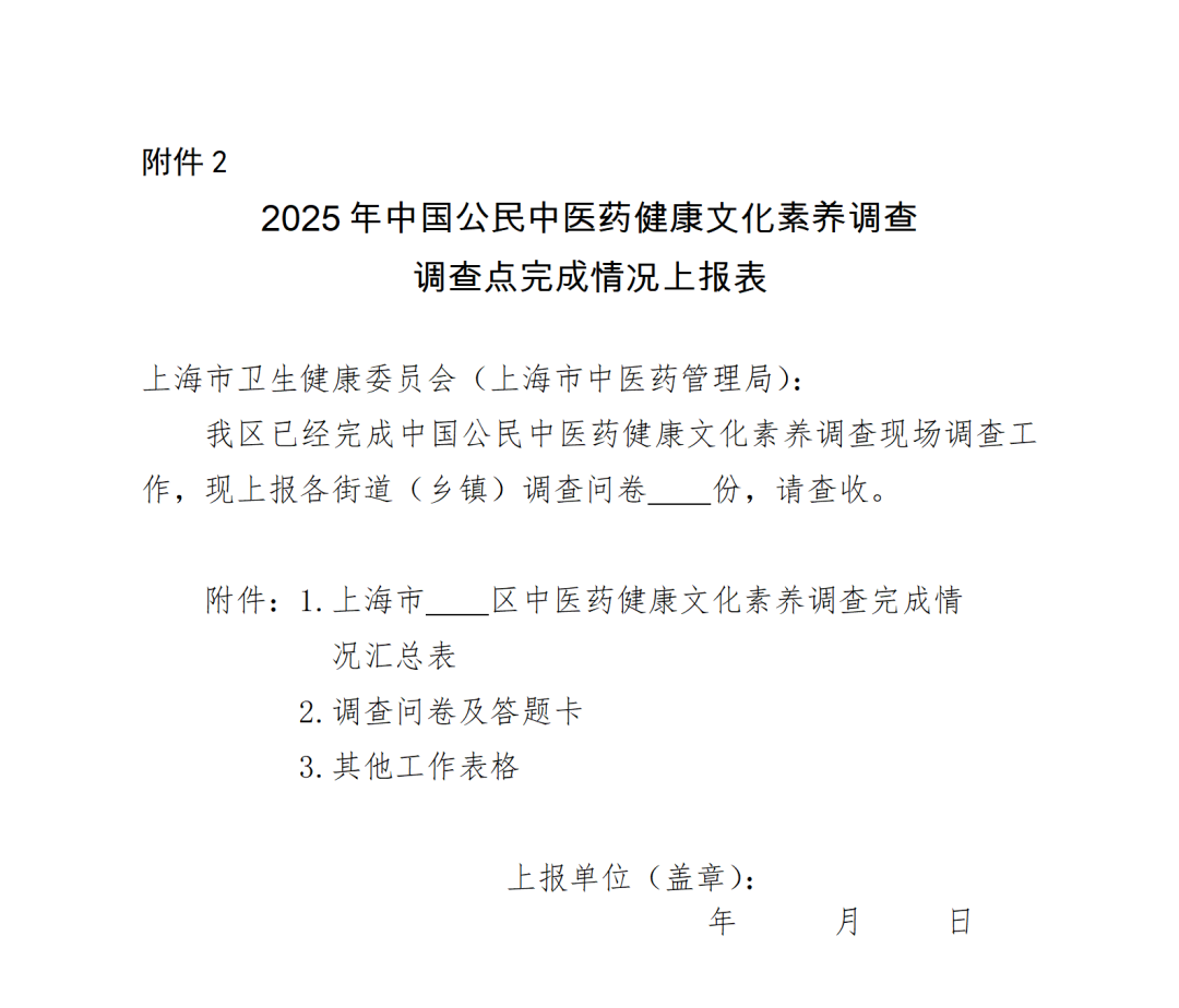 2025年“中国公民中医药健康文化素养调查”上海市工作方案(见附件2)。