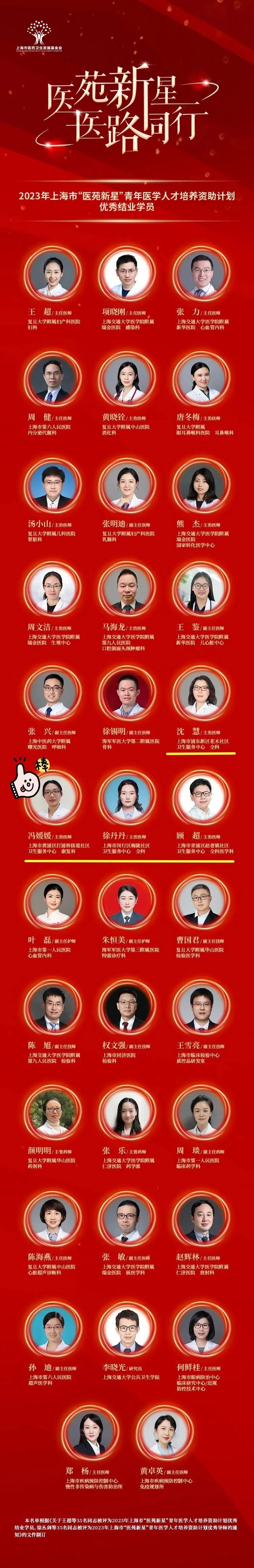 为进一步凝聚各方力量深化医药卫生体制改革,拓展青年医学人才培养选拔渠道,打造优秀的青年医学人才队伍。6月13日,2020-2023年上海市“医苑新星”青年医学人才培养资助计划结业仪式暨院士专家讲坛在上海展览中心举办。2020-2023年度上海248家社区卫生服务中心,共有14位社区医务工作者荣获上海市“医苑新星”青年医学人才培养资助计划优秀结业学员。