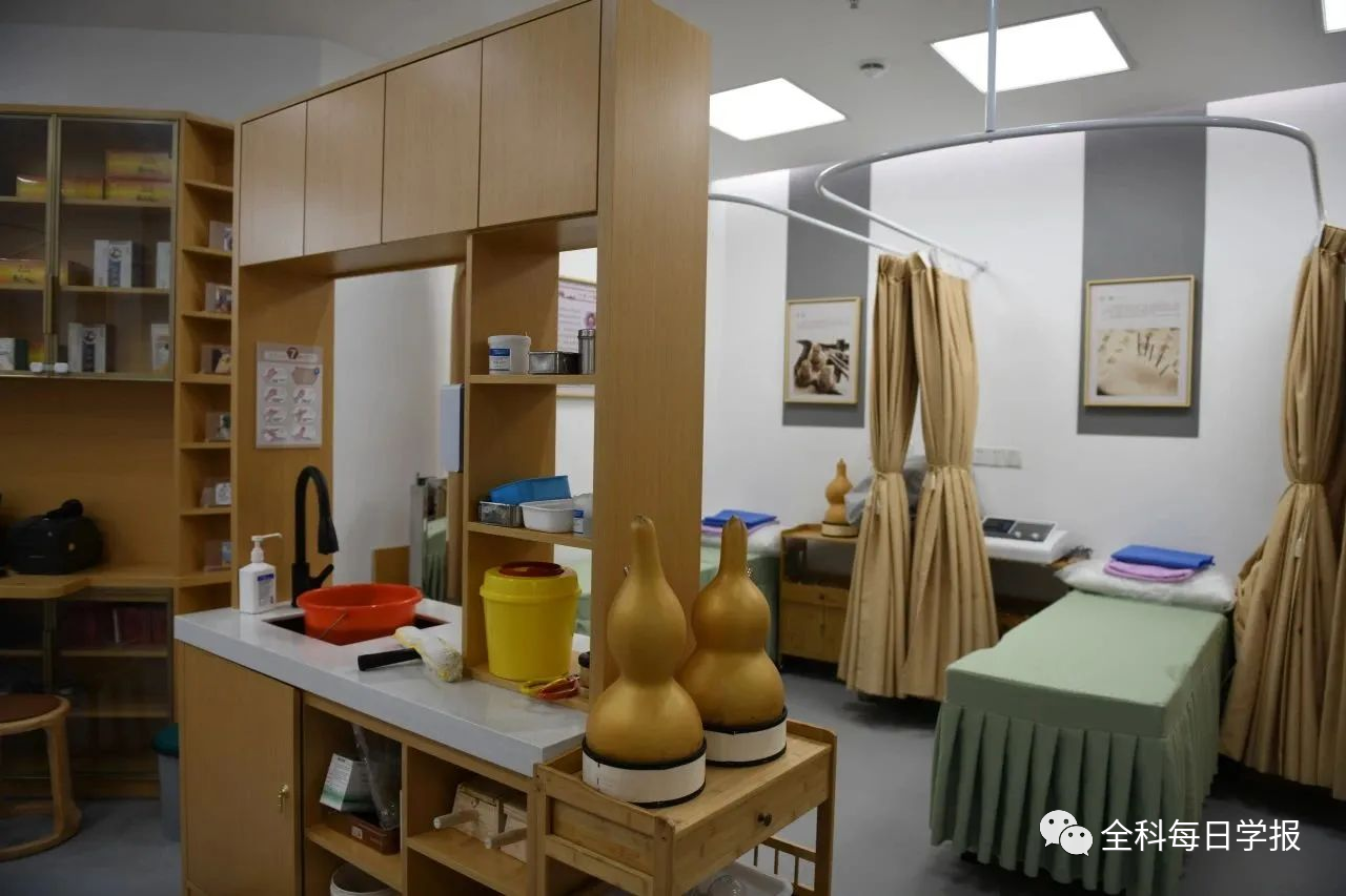 天龙服务站辐射天钥新村和龙山新村,总面积逾200平米,为周围5个居委近2万居民提供中医功法、冬病夏治、中医适宜技术、中医养生等中医药服务。站点设独立的中医诊室、中医治疗室、中医药文化体验角,不仅配有灸疗仪、熏蒸仪、督灸床、生物刺激反馈仪等传统治疗仪器,还添置了功法AI互动屏、中医药健康教育“锦囊妙机”、中医舌面脉四诊仪等现代设备。
