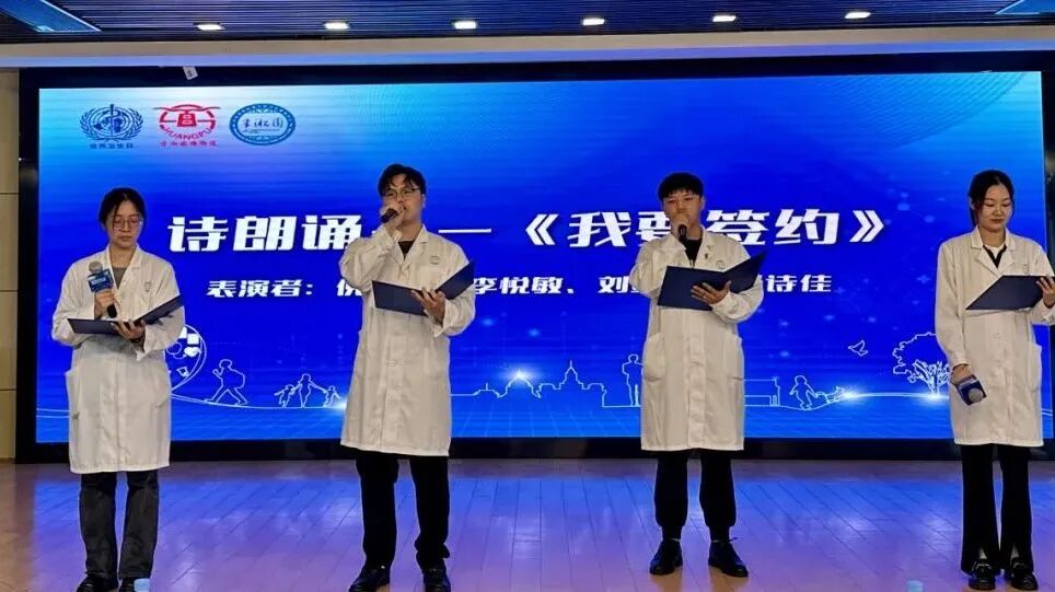 家庭医生签约是一场情深意重的双向奔赴。中心张诗佳、李悦敏、刘剑伟、倪丹琳带来诗朗诵——《我要签约》。