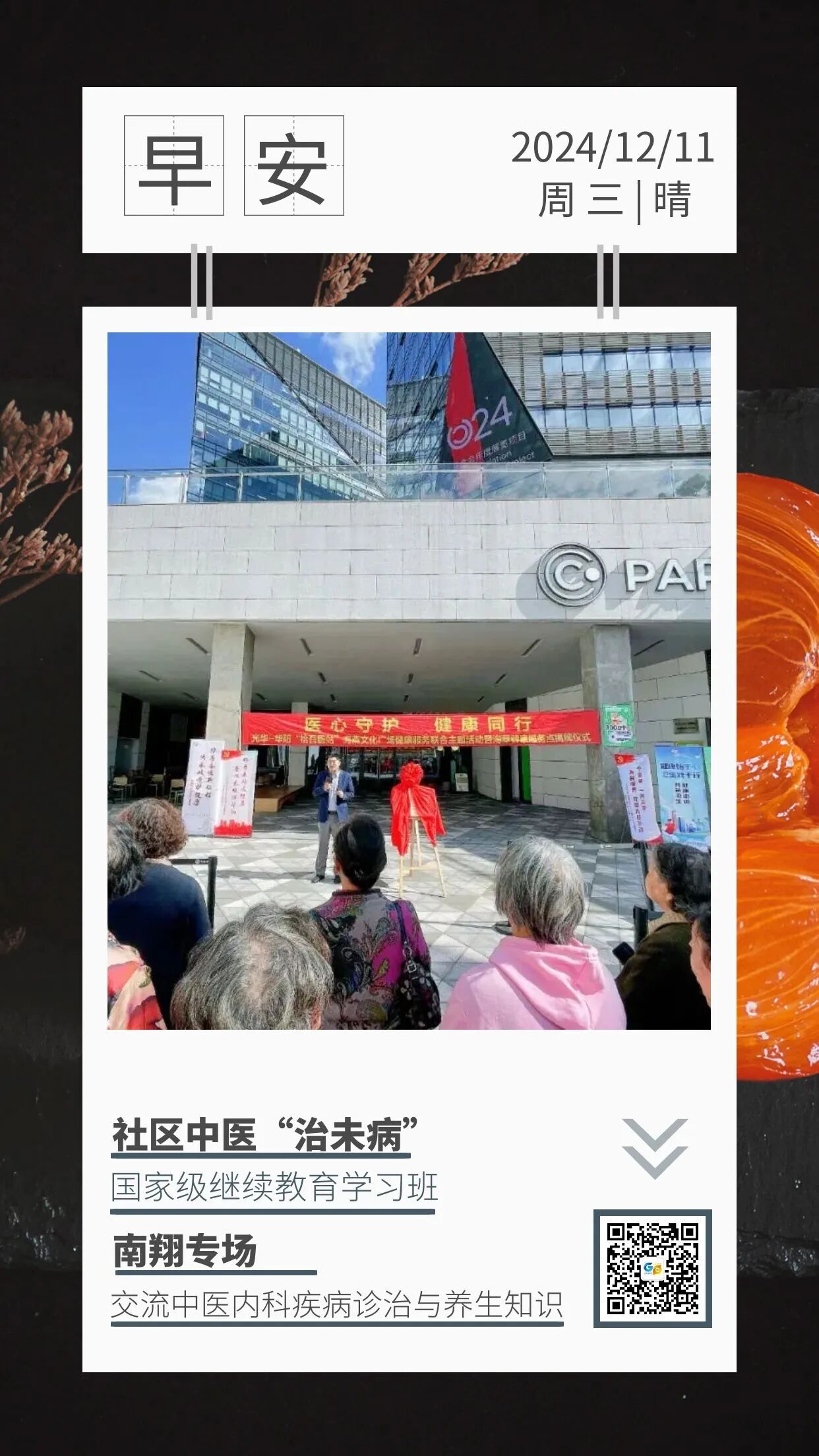 2024年12月6日,上海市社区中医“治未病”领域迎来了一次意义深远的盛会——中西医结合助力社区中医药高质量发展研讨会暨国家级继续教育学习班(南翔专场)在嘉定区南翔镇社区卫生服务中心星城分中心隆重举行。活动中,上海中医药社区卫生服务研究中心社区中医“治未病”专业委员会同时揭牌成立。此次活动吸引了众多中医界专家、学者以及社区医疗工作者齐聚一堂,共同见证这一重要时刻,并深入学习交流中医内科疾病诊治与养生知识。