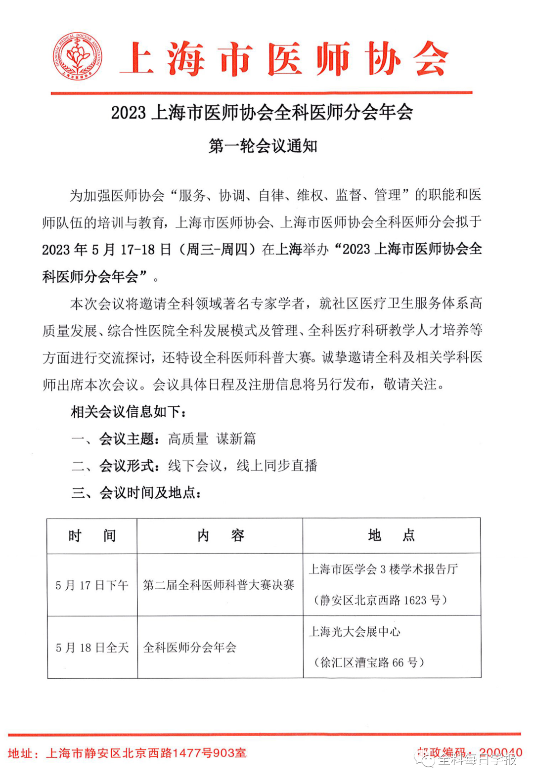 学术之声|2023上海市医师协会全科医师分会年会第一轮会议5月即将举办