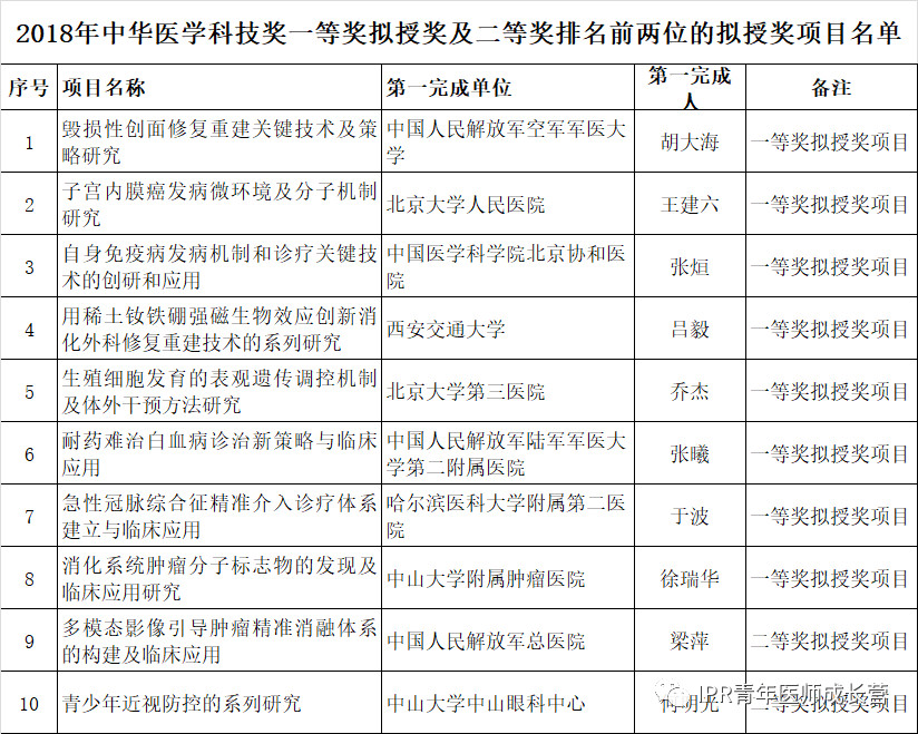 2.2016年和2017年获得中华医学科技奖一等奖或二等奖排名前两位的项目,以及2018年中华医学科技奖终审通过一等奖拟授奖项目或二等奖拟授奖项目排名前两位的项目均可申请以中华医学会名义提名自然科学奖、技术发明奖或科技进步奖。