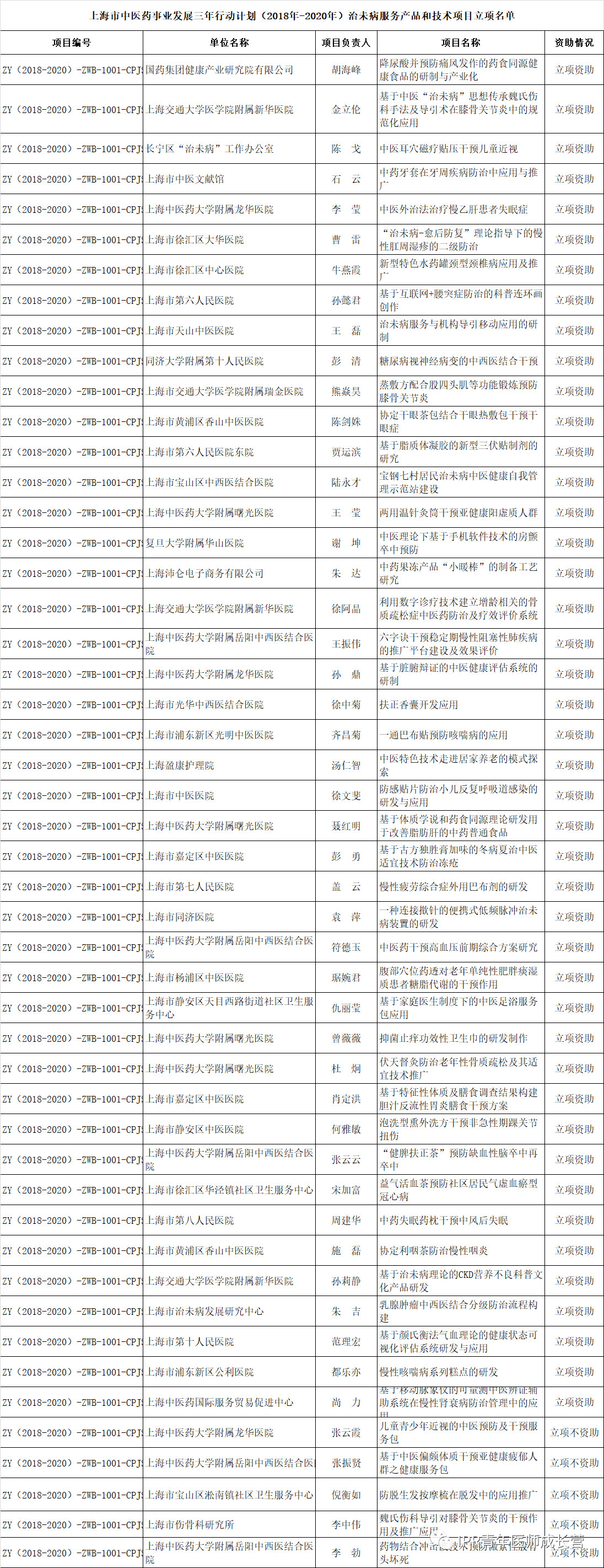 附件:上海市中医药事业发展三年行动计划(2018年-2020年)治未病服务产品和技术项目立项名单