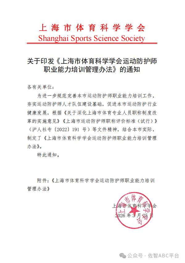 上海市体育科学学会|关于印发《上海市体育科学学会运动防护师职业能力培训管理办法》的通知
