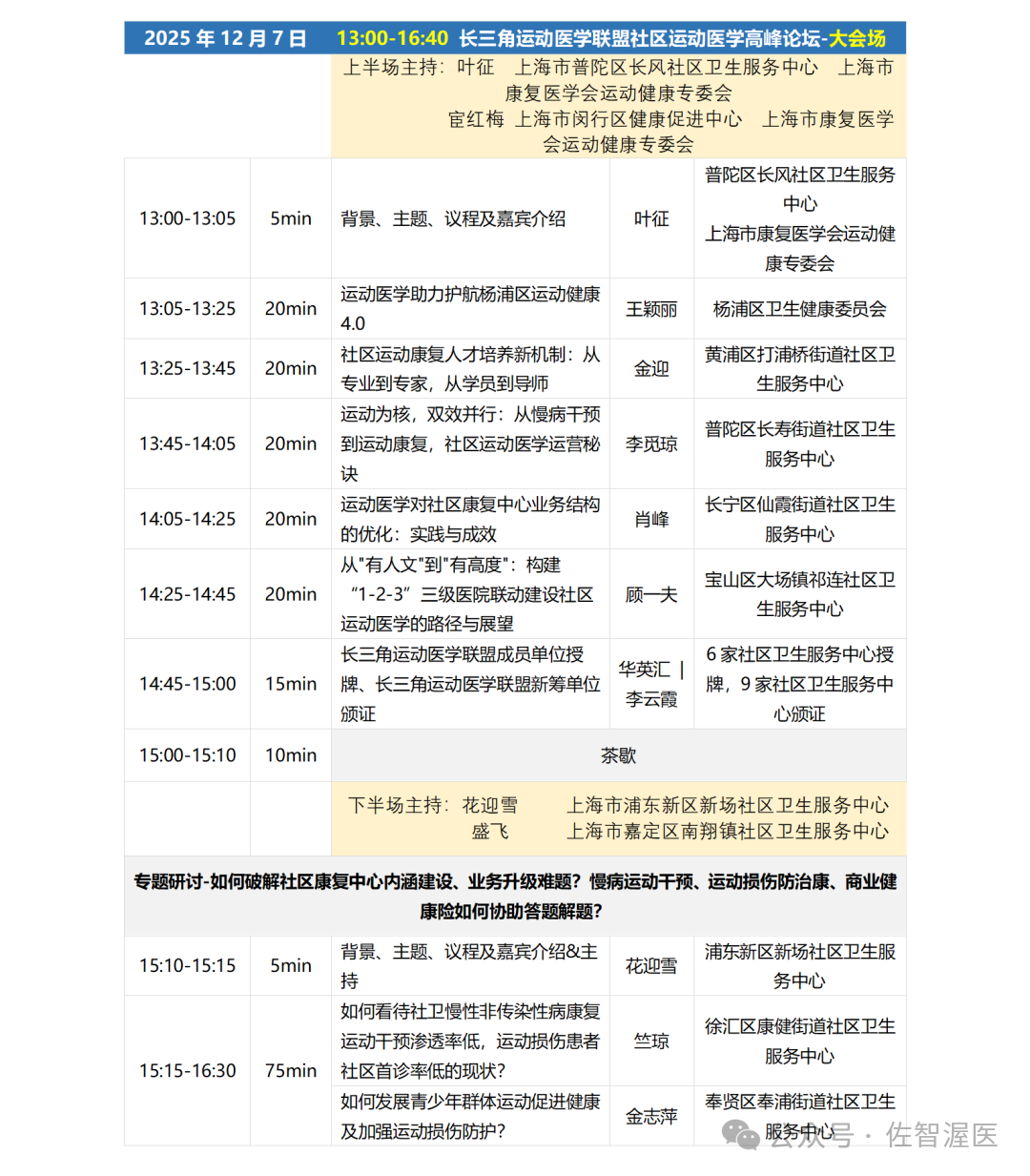2025年12月7日,由长三角运动医学联盟、上海康复医学会运动健康专业委员会主办,复旦大学附属华山医院、北京生命绿洲公益服务中心、全科推动社区健康行业发展促进平台协办的“长三角运动医学联盟社区运动医学2025高峰论坛”将在上海隆重召开。