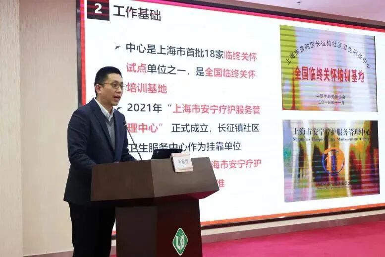 普陀区长征镇社区卫生服务中心副主任华志佳围绕“用标准化管理推动安宁疗护精细化服务、科学化发展”主题,对长征社卫安宁疗护工作的开展进行了介绍和分享。只有高标准,才有高质量,长征社卫持续发扬“长征精神”,让标准指导工作,用行动体现服务,让患者享受安宁,用医学诠释关怀。