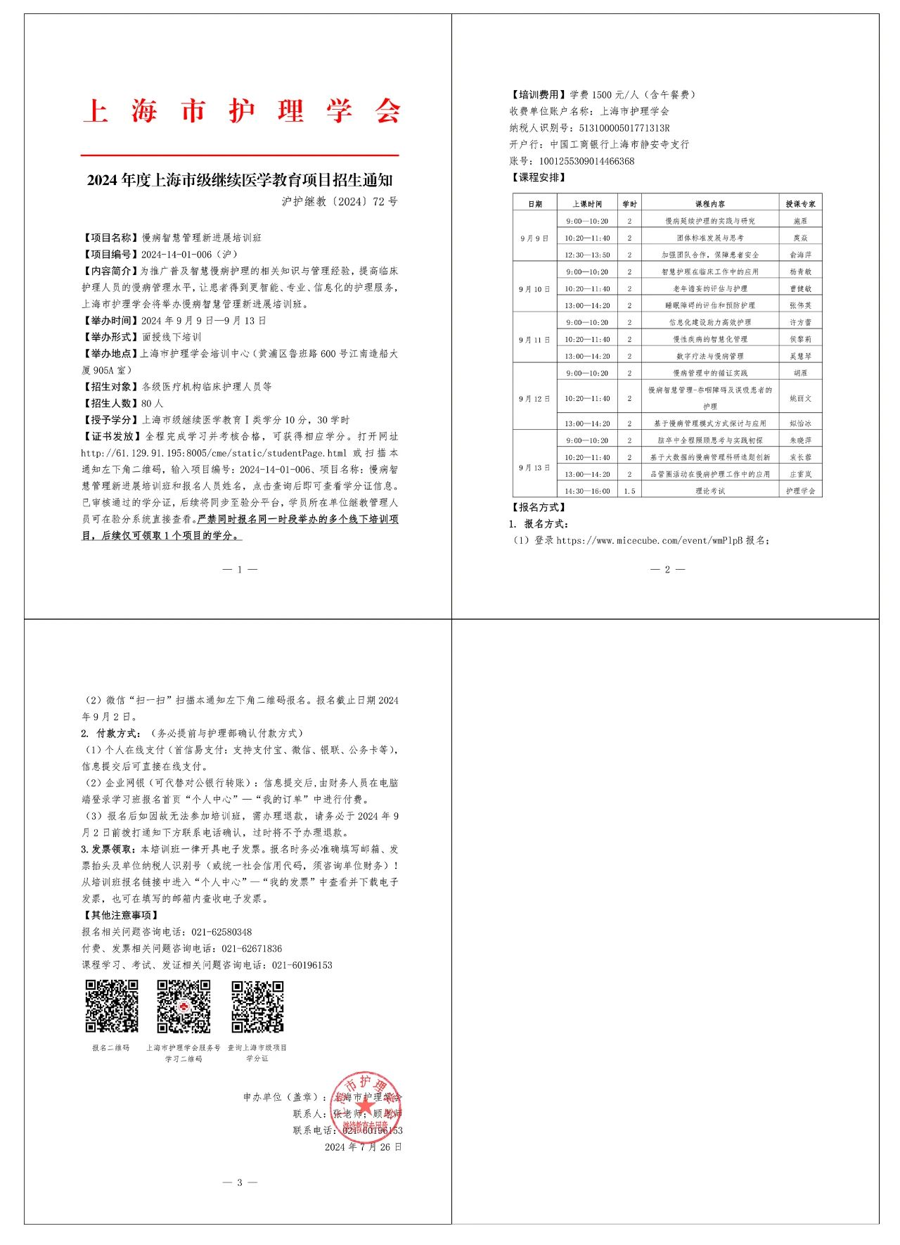 (3)报名后如因故无法参加培训班,需办理退款,请务必于2024年9月2日前拨打通知下方联系电话确认,过时将不予办理退款。