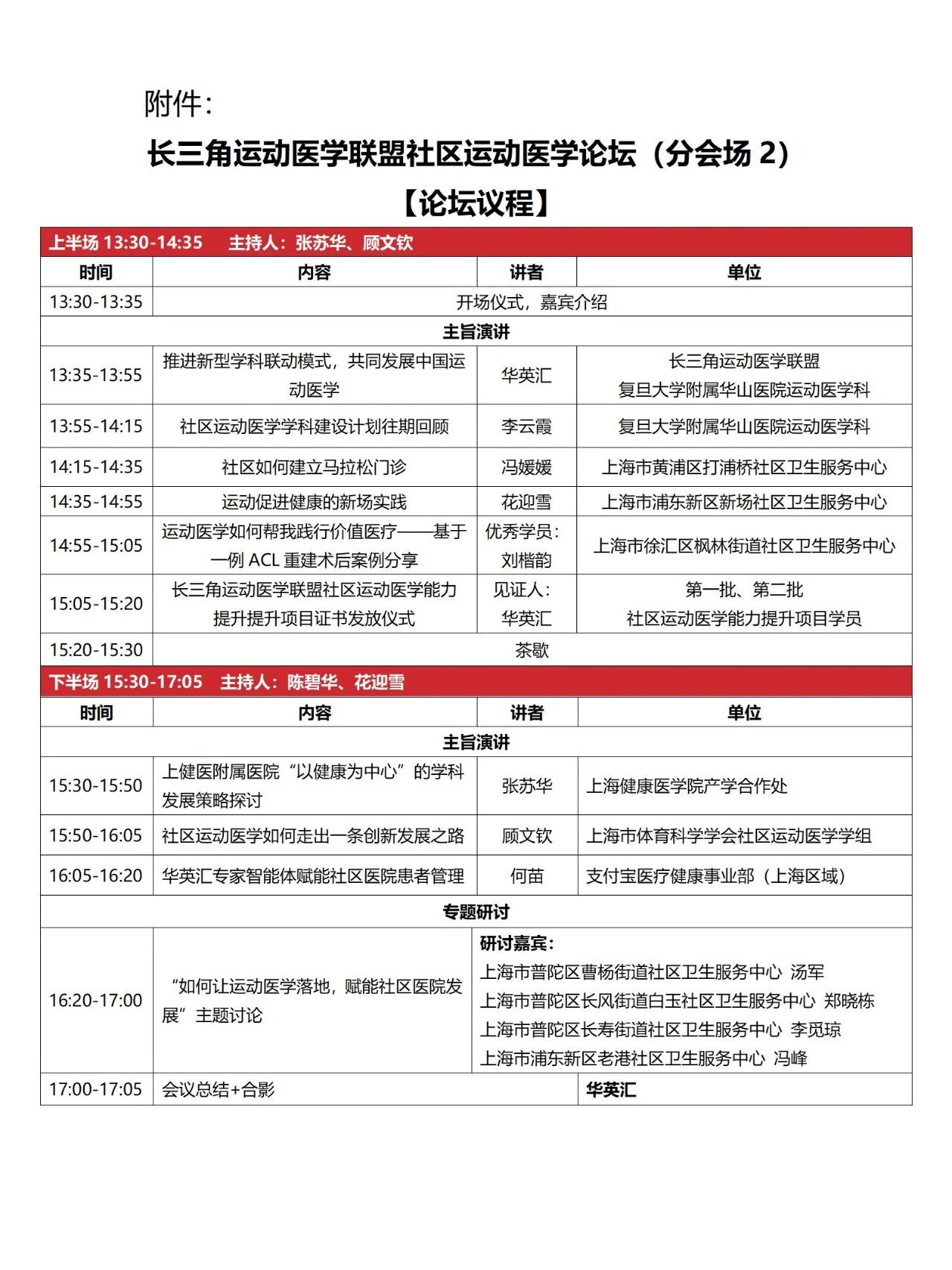 本次分论坛的主题是:社区领航·数智赋能!同时将进行长三角运动医学联盟第二批会员单位挂筹证书发放仪式。热烈欢迎各联盟会员单位和有志于发展运动医学同道参加本次会议。共同探寻运动健康促进健康中国战略!期待您拨冗莅临,共襄盛举!