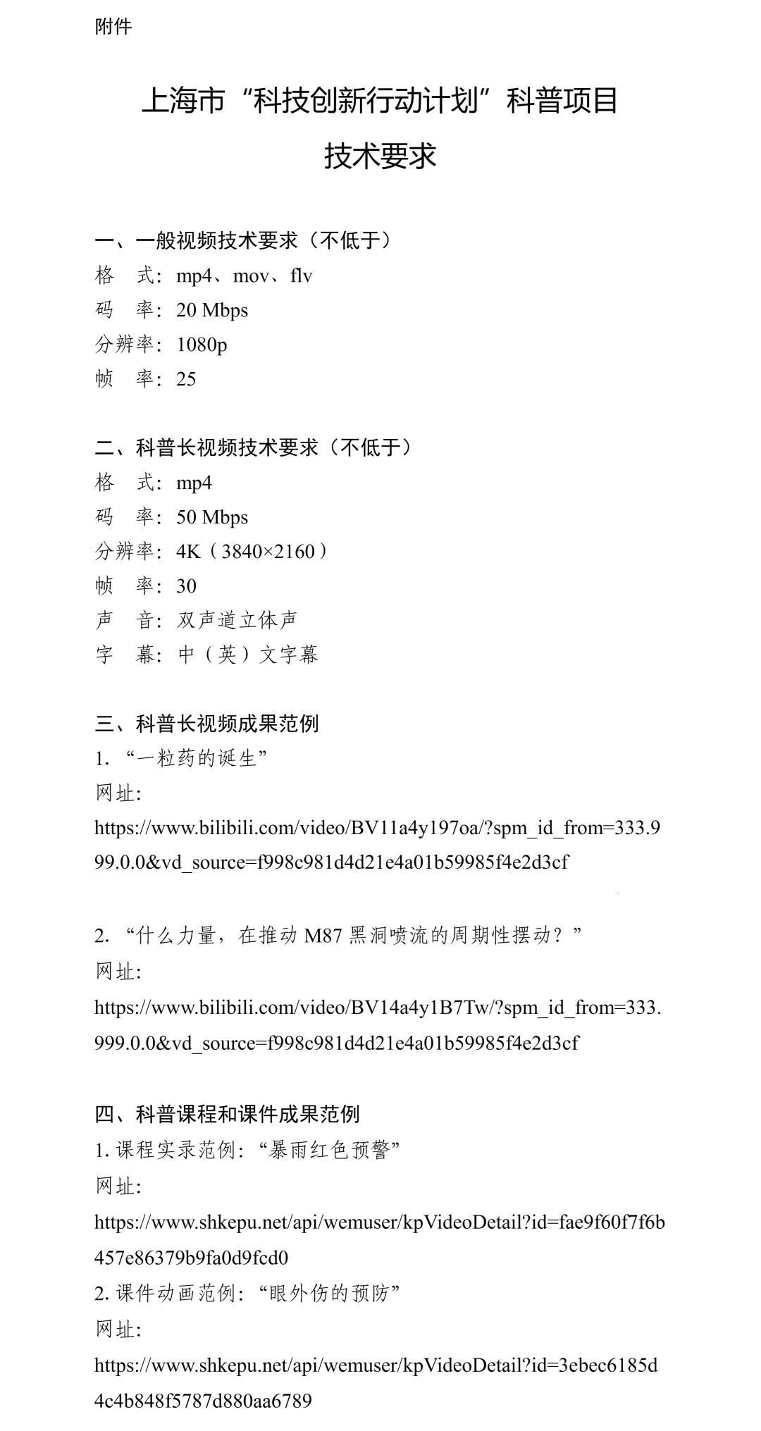附件:上海市“科技创新行动计划”科普项目技术要求