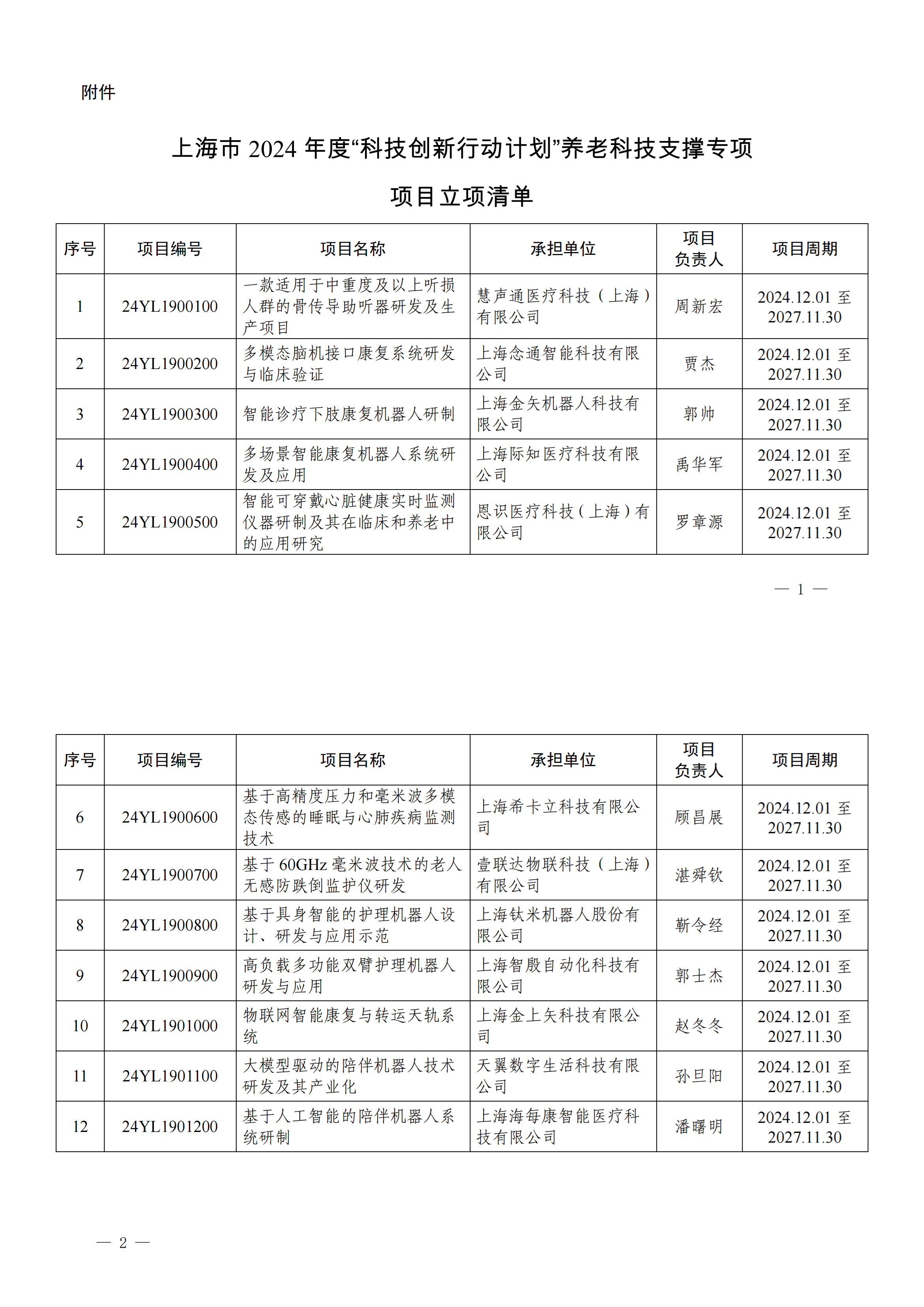 附件:上海市2024年度“科技创新行动计划”养老科技支撑专项项目立项清单.pdf