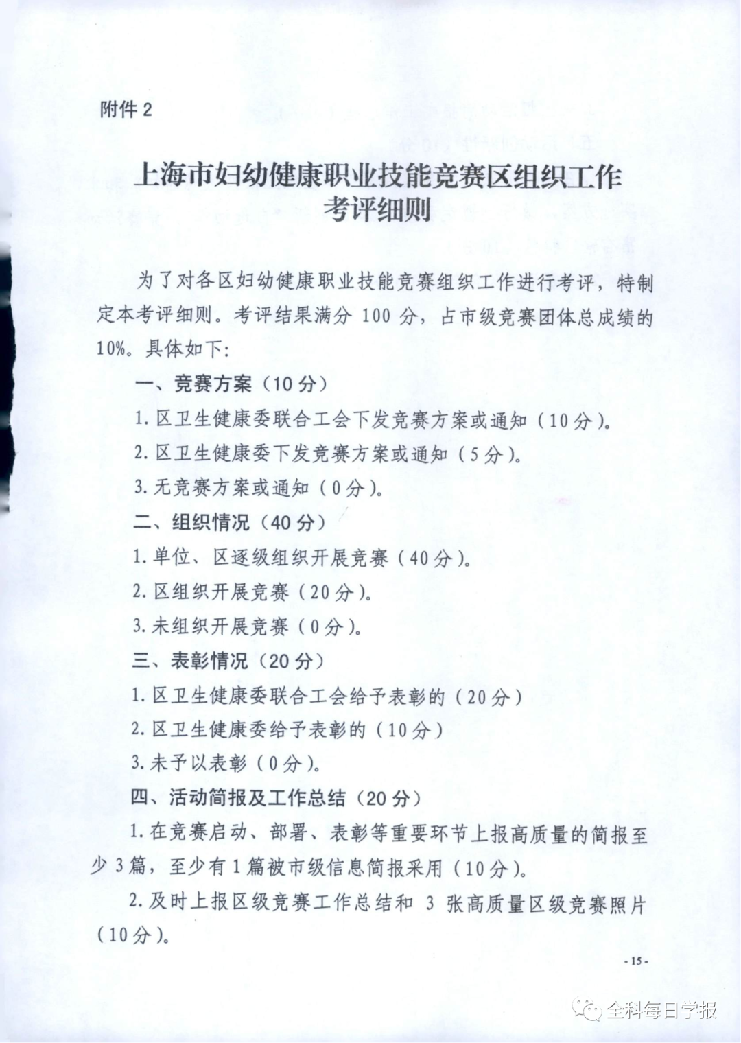 2.上海市妇幼健康职业技能竞赛区组织工作考评细则