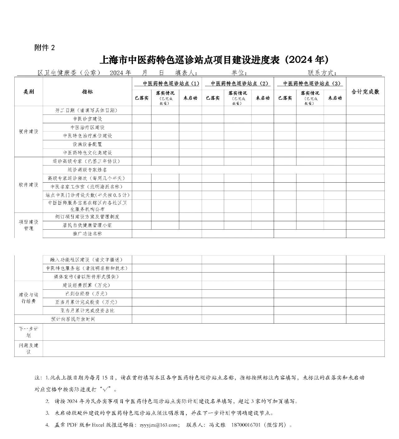 2.上海市中医药特色巡诊站点项目建设进度表(2024年)