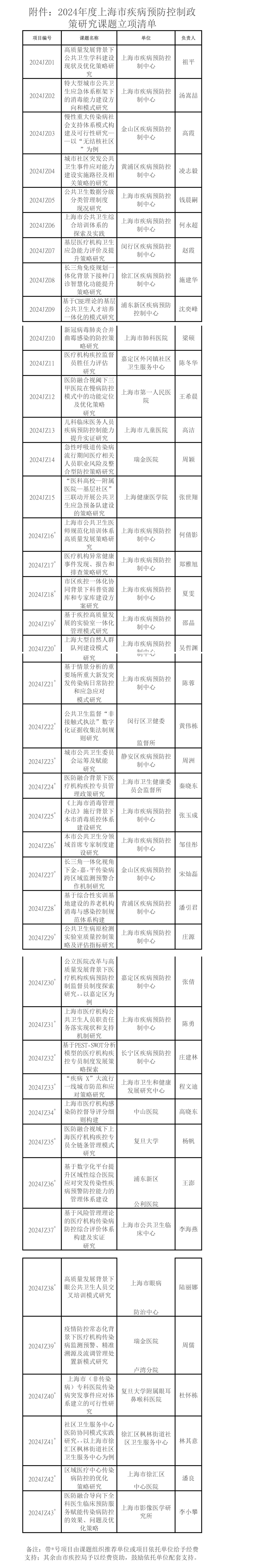 附件:2024年度上海市疾病预防控制政策研究课题立项清单
