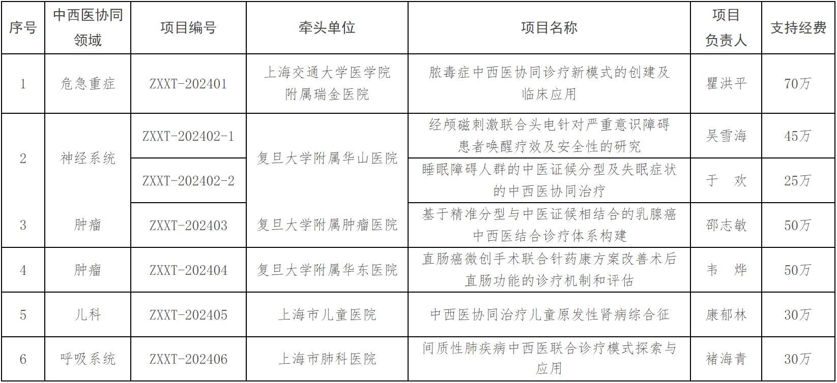 附件:2024年度市级医院中西医协同引导项目立项名单