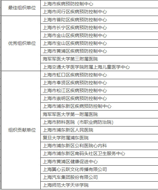2.上海市第三届职业健康传播作品最佳组织单位、优秀组织单位、组织贡献单位名单