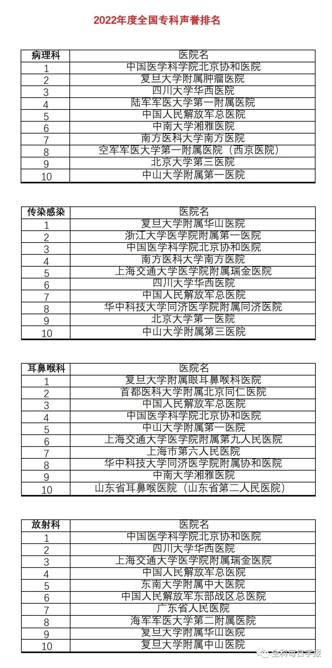 十余年来,全国各大医院院长始终关注的也是每家医院各专科排名的变化。