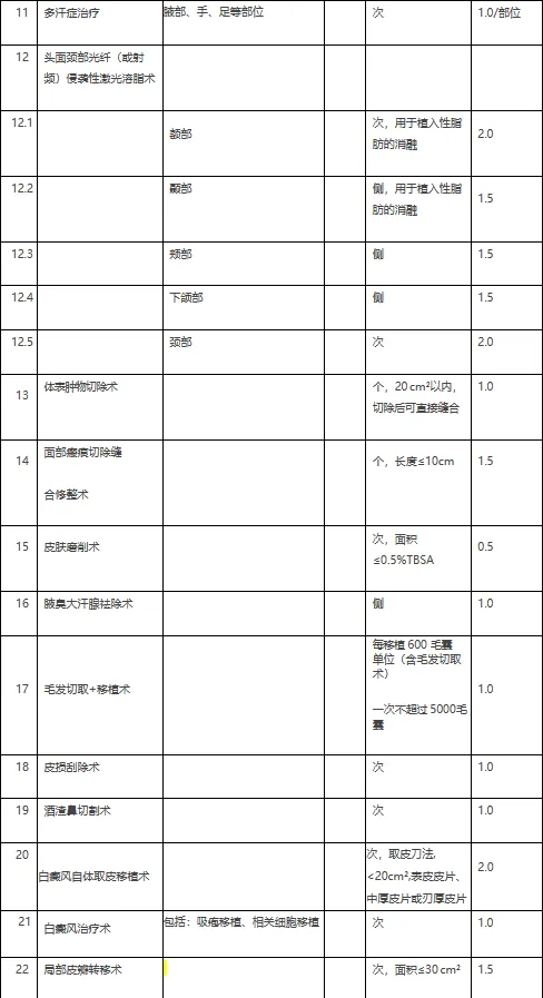 4. 三级医疗美容(整形)专科医院、设有医疗美容(整形)科目的三级综合医院:治疗指数累计不超过9.0/次。