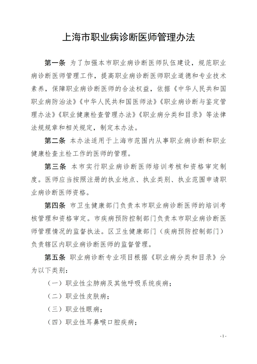 明确适用对象。适用于上海市范围内从事职业病诊断和职业健康检查主检的医师管理工作。