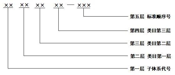 中医药标准体系的层次编号和标准代号采用二节式,以短横线分开,前面的是层次序列子体系代号和类目代号,后面的是顺序号。中医药标准体系编号结构如图2所示。