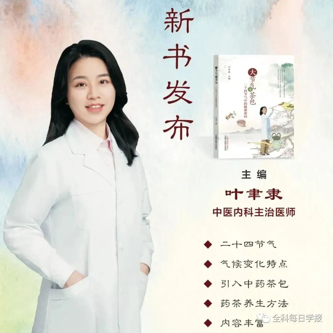 近日,中心、医院中医内科主治医师叶聿隶,作为孟河医派丁氏第五代弟子,主编的科普著作《大节气小茶包:二十四节气中的健康密码》正式出版。通过一个个小故事,让读者了解药茶与养生文化,轻松掌握不同节气的茶饮妙方。