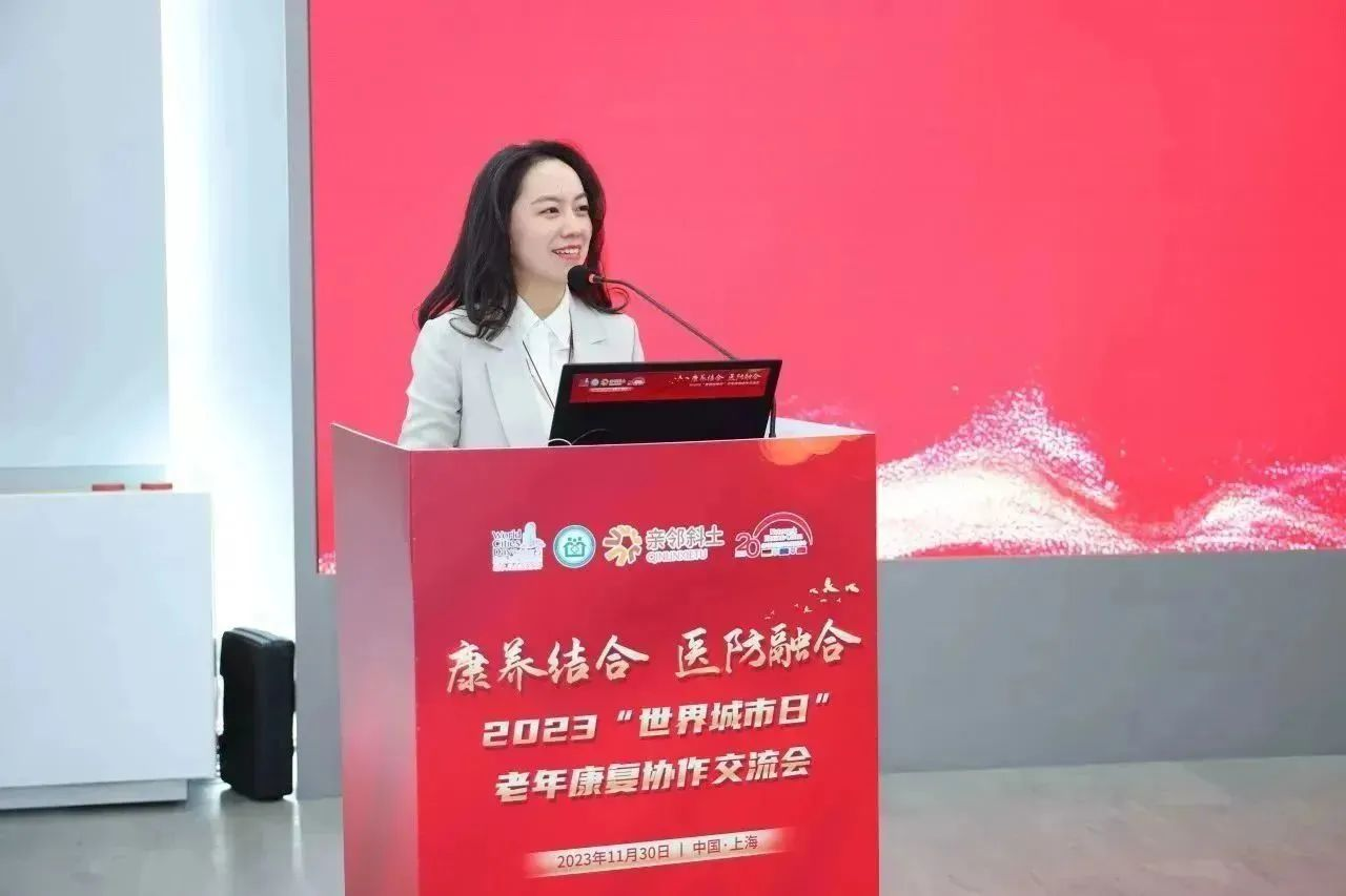 徐汇区斜土路街道办事处副主任阮译萱结合斜土街道实际情况介绍了辖区老龄化现状。她表示医养结合是我国积极应对人口老龄化的重要措施之一,也是对传统养老方式的创新发展,更是未来健康养老的方向。她介绍近年来,斜土街道积极探索整合社区养老服务资源,完善15分钟生活圈功能,深化社区嵌入式品牌养老服务新体系,有效融入长者照护、日间照料、家庭医生签约服务、长期护理保险服务、健康管理、康复辅具社区租赁、助餐等多项为老服务内容。聚焦解决社区养老的急、难、愁、盼问题,探索打破养老服务和康复、健康促进壁垒,全面提升社区养老服务质量和水平,让老年人在家门口就能享受优质的养老为老服务。